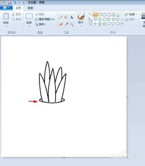 第四步:在画好的芦荟下光始方,画出一个花盆盆口的形状。