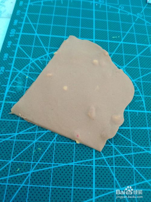 首先调好制作巧克力脆皮的颜色的粘土(这里用了棕色和黄色混合),因为黄色粘土有点变干结块,可以看到压成的饼状并不平整,刚好有点像坚果脆,所以不做调整