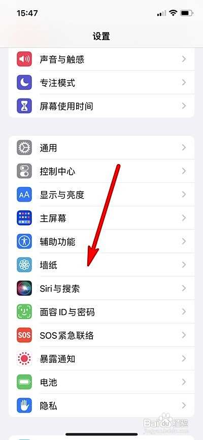 首先打开手机点击进入设置,点击进入墙纸选项。