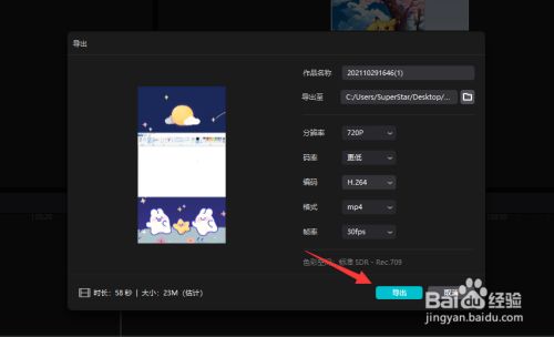 最后点击“导出”按钮,将视频导出保存即可。