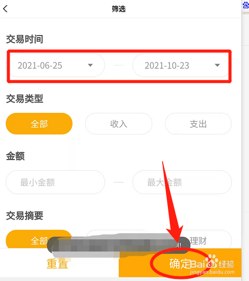 在筛选页面,选择需要查询的时间段,然后点击确定