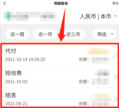 进入明细查讯页面后,即可查看到账单明细了,如下图所示