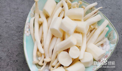 山药清洗干净去皮切块洗净,白玉菇洗净备用