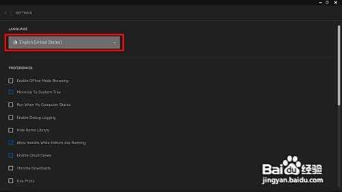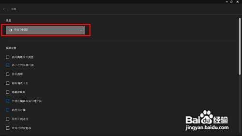 打开epic主界面,点击红框框住的选择栏,选择“Default”选择中文系统,返回商店主界面。