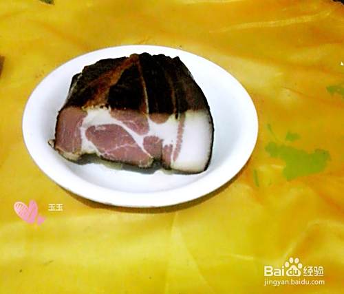 先把腊肉切一小块出来,他们给我带来一大块呢,我舍不得,留下慢慢吃,再把腊肉放在水里面煮15分钟。主要是去掉它的咸味,还有腊肉比较硬,煮一下容易炒熟。