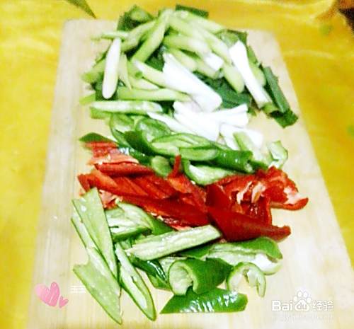 再把红椒,大蒜,蒜苗的茎倒进去炒二分钟。