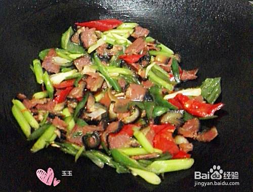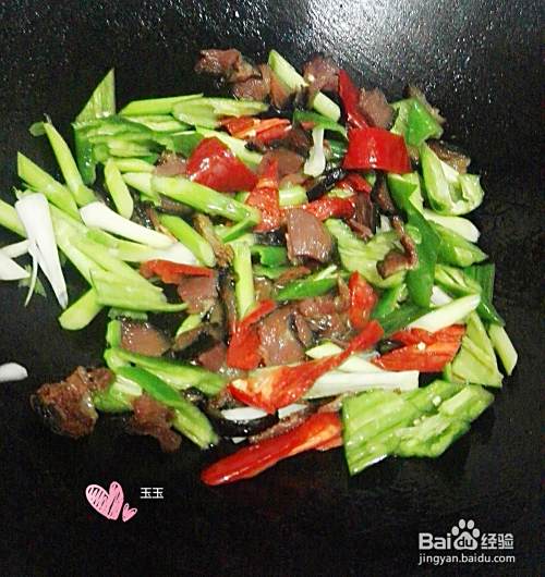 不停地翻炒,还可以盖上盖子二分钟。因为腊肉也煮了15分钟的,又切得很薄,所以二三分钟就熟了。