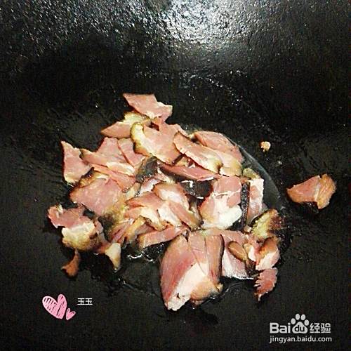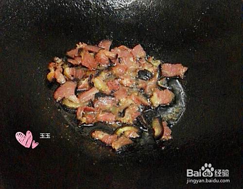 锅烧热,先把肥有腊肉放进去炒出油来。