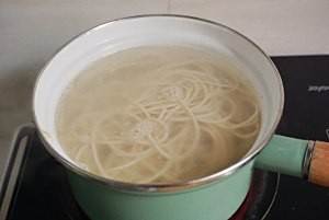 面条倒进去、 拌拌拌 确保每根面条都能裹到香香的酱汁。