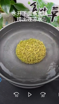 首先我们等水开下入面条煮熟捞出过凉。