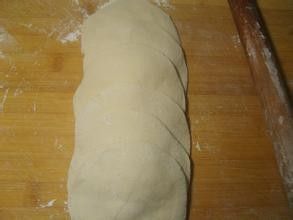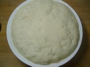 适量的酵母溶解在温水中并搅拌匀,用酵母水溶液把面和好。静止一段时间让面块发酵好。