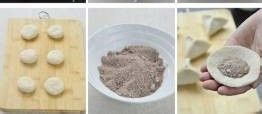 将红糖擀成细粉,加少量面粉搅拌调匀,制成馅心。
