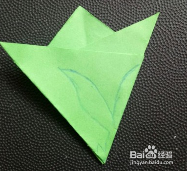 在折好的折纸上画上喜欢的图案,多余的部分画出阴影表示