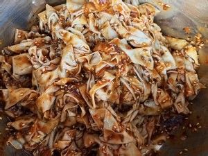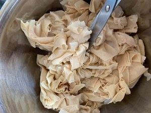 豆皮用凉水洗几遍,随便用剪子剪几下
