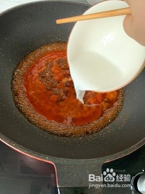 锅里酱冒细泡时加入半碗水淀粉(淀粉+凉开水兑的)