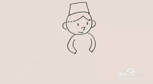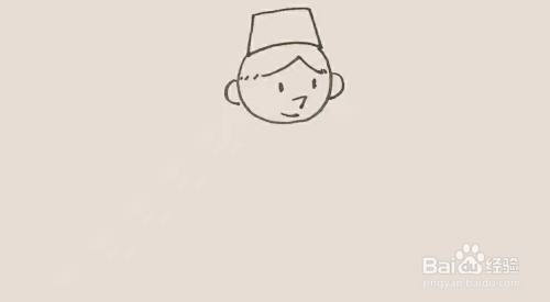 在头的上面,画上一个方形作为他的帽子。