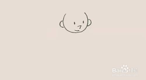 先画上一个大的半圆作为脑袋,然后画出医生的耳朵,两个小眼睛、鼻子和嘴巴。