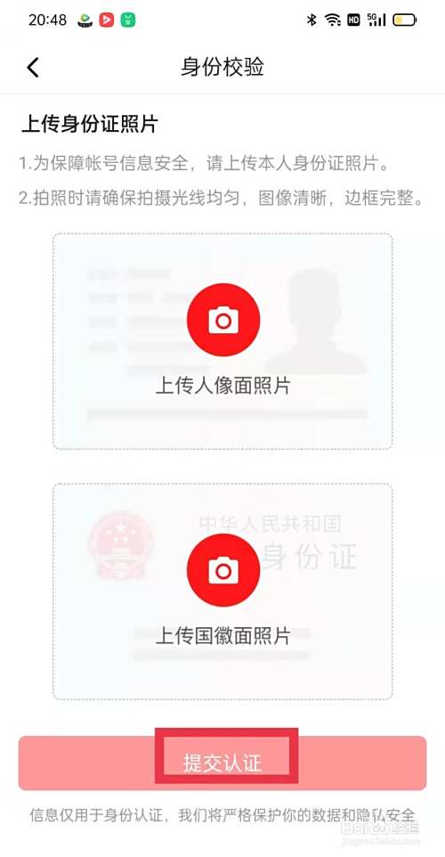 上传信息,点击提交认证即可。