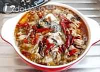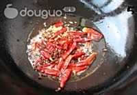 锅中放入一勺底油烧热,加入花椒、辣椒,离火烧入味。这样不会把辣椒烧黑。然后捞出一半的花椒、辣椒备用。
