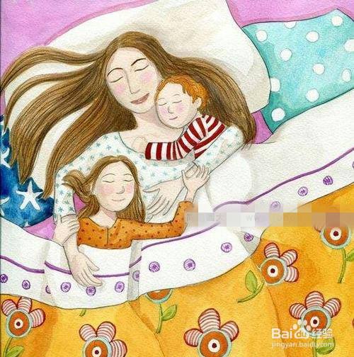 母亲三人相拥在一起,看着妈妈笑弯的嘴角,她一定做着甜蜜的梦。
