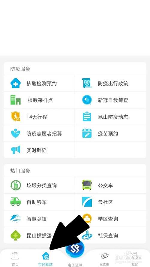 进入APP首页,点击市民驿站。