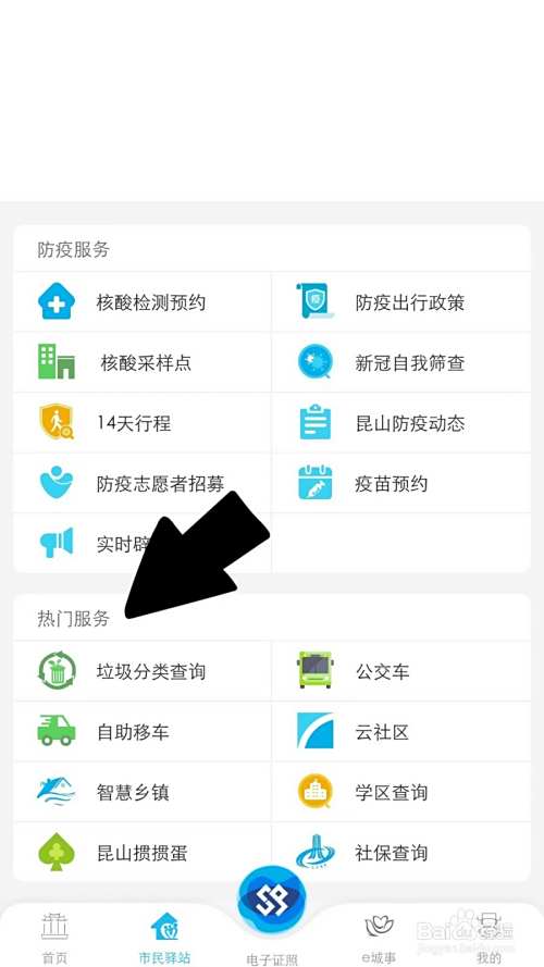 进入市民驿站页面,点击热门服务。