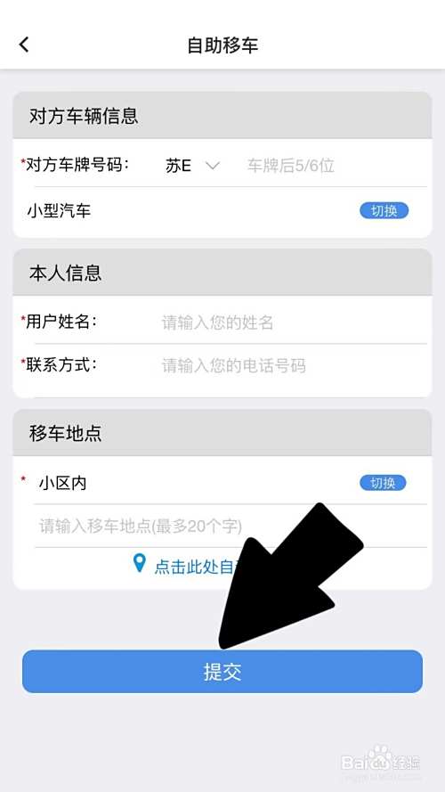 进入自助移车页面,点击提交。