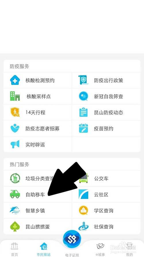 进入热门服务页面,点击自助移车。