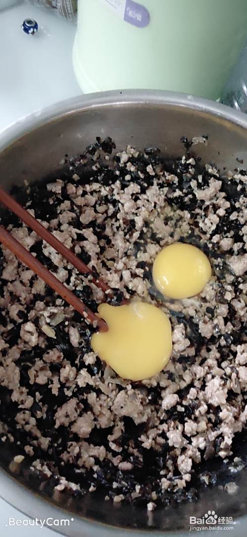为了为馅提提鲜,可以加两个新鲜的鸡蛋。