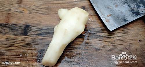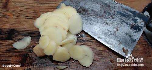准备好姜,去姜皮,切姜片,然后剁成末。