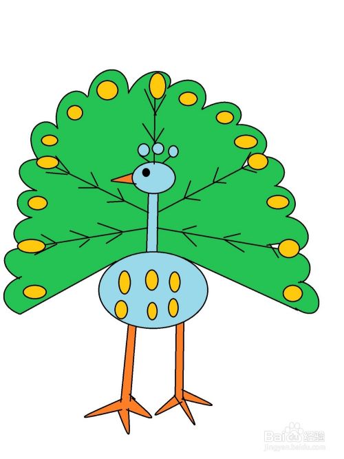 最后涂上颜色,这样简单又好看的孔雀就画好了。