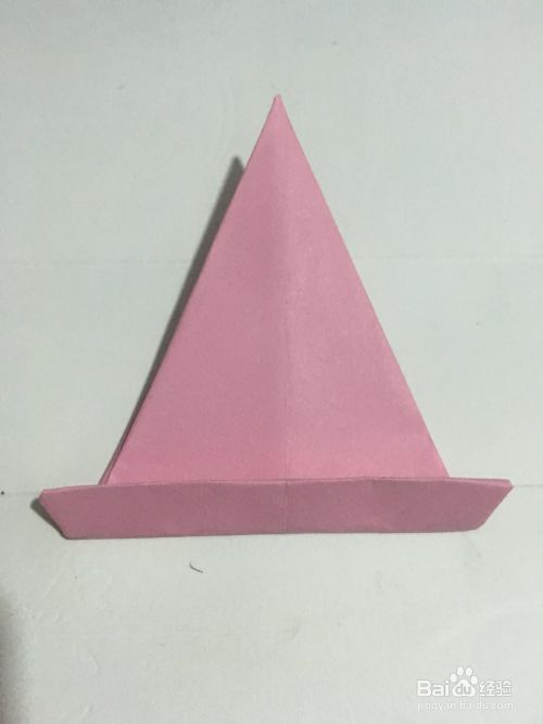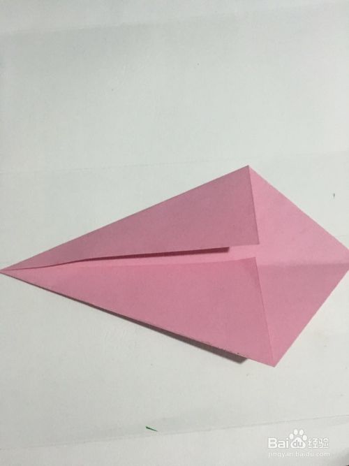 第一步 先把一张16厘米X16厘米的正方形粉色彩纸 从下向上对角折叠