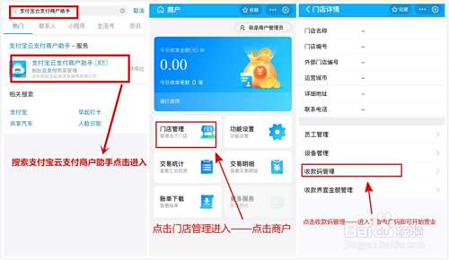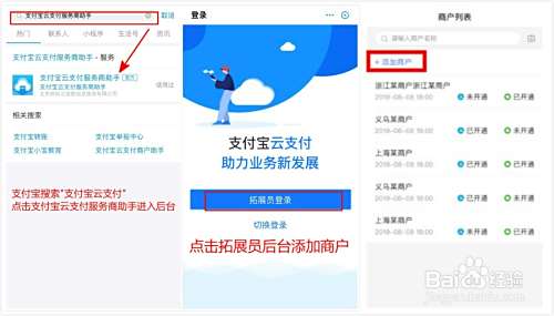 手机打开支付宝搜一搜-支付宝云支付助手-点击进入后台程序点击添加商户;