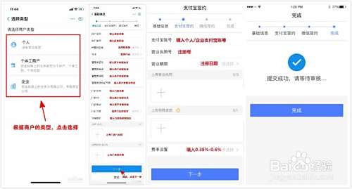 选择商户类型:三项选择(个人、个体工商户、企业/公司)填写商户符合对应资料,申请审核通过就可以。