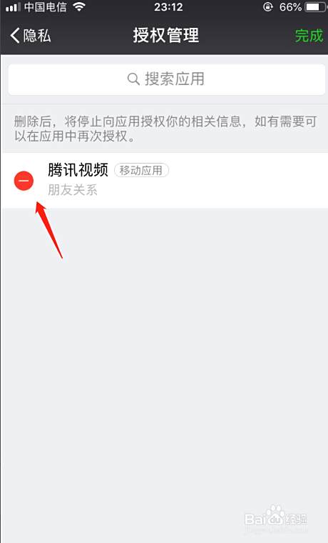 接下来点击右上角的“管理”按钮,被绑定的应用前面会出现一个红色的减号图标。