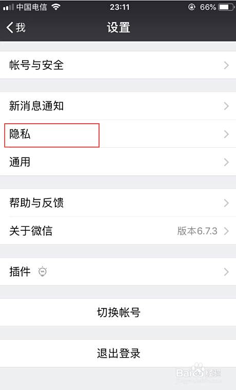 3、进入“设置”界面后,点击里面的“隐私”按钮。