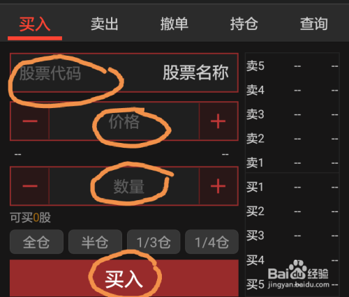 在 价格 、数量位置分别输入想买进的股票的价格和要购买的数量。