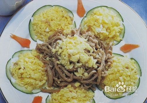 桂花10克,羊肉500克,鸡蛋清30毫升,黄瓜、湿淀粉、葱、婪、蒜、鸡汤、精盐、味精、植物抽、香油各适量。