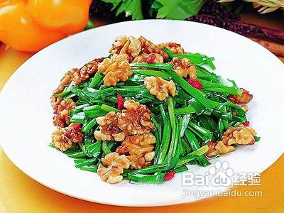 <p>核桃仁50克,韭菜、香油、精盐各适量</p>
