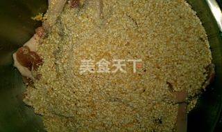 下面是体力活了,把炒好的米盛出,用擀面仗擀成有碎粒的米粉备用,为了吸油效果好,千万别擀太碎。