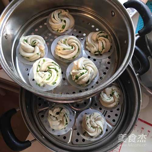 13锅中放水,将花卷放入垫上油纸的蒸锅中。