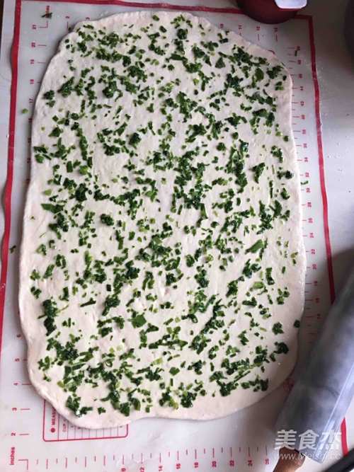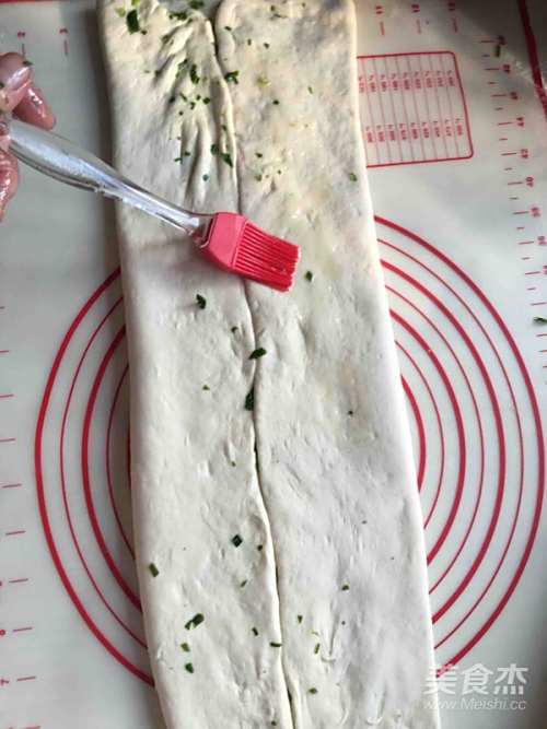 5擀成长方形,面团上均匀的刷上油。