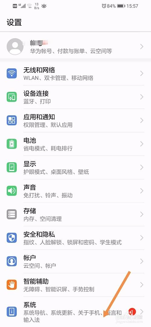 然后点击系统。