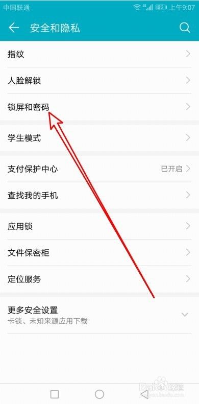接着在打开的安全和隐私页面中,找到“锁屏和密码”的设置项。