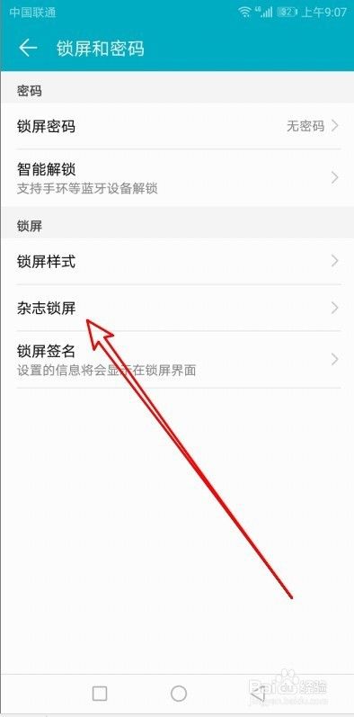 这时就会打开锁屏和密码的设置页面,在页面中找到“杂志锁屏”设置项。