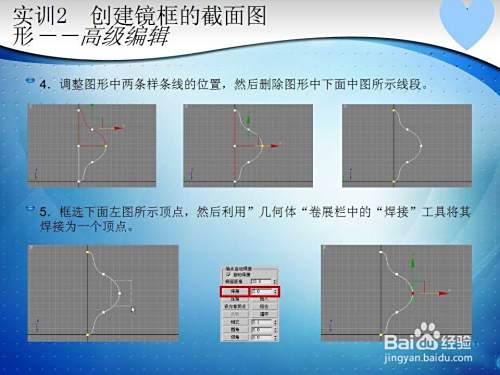 5.框选下面左图所示顶点,然后利用”几何体“卷展栏中的“焊接”工具将其焊接为一个顶点。