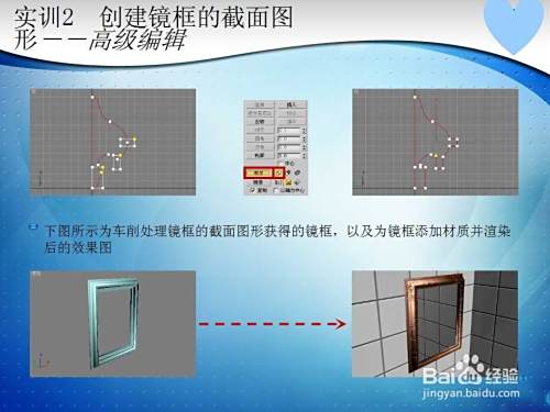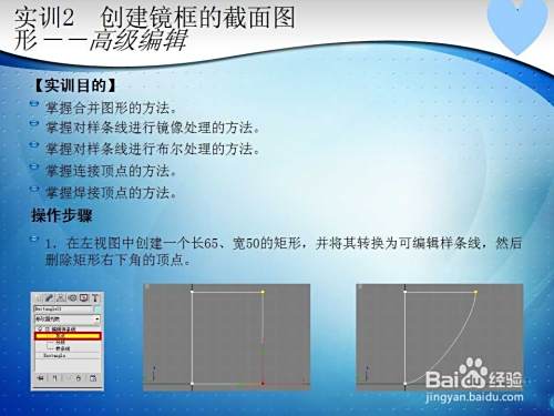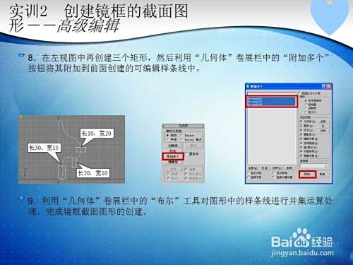 9.利用“几何体”卷展栏中的“布尔”工具对图形中的样条线进行并集运算处理,完成镜框截面图形的创建。