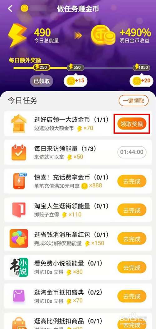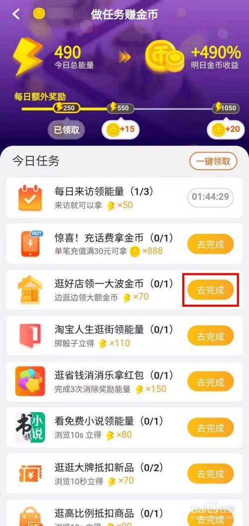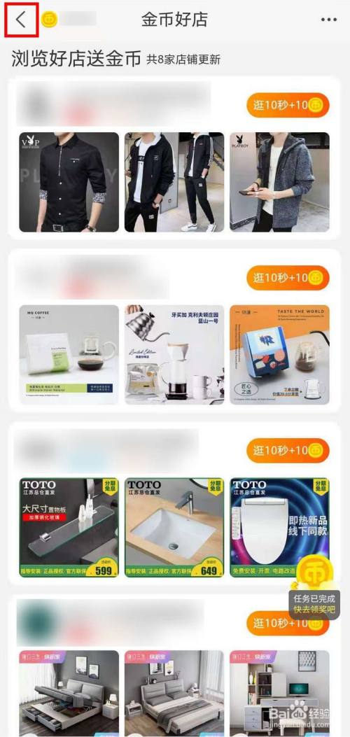 进入任务界面,任务很多,点击逛好店领一大波金币后的去完成;