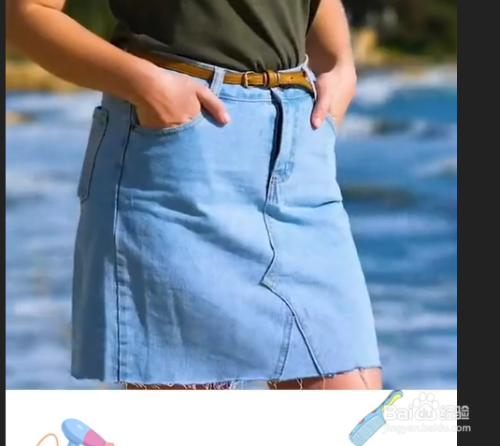 三,剪掉牛仔裤的裤腿,剪开裤裆位置,翻面贴上裤脚,剪去多余部分,另一面也是如此,这样一个好看的半身裙就做好了。
