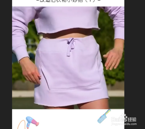 一,把长袖卫衣的帽绳抽掉,卫衣从中间截断,下方收腰处开两个洞,把帽绳从一头穿进,另一头穿出这样一件卫衣,就变成了一套衣服。